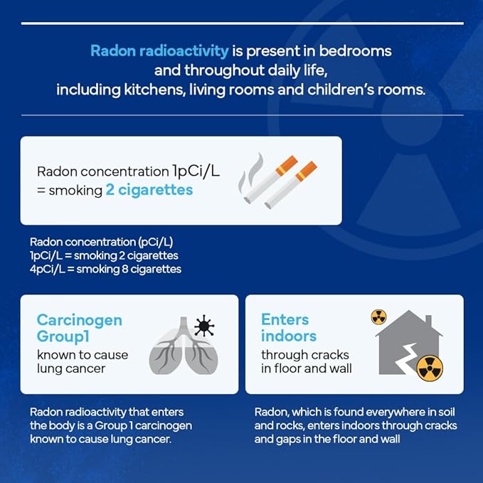 - Complete Indoor Air Monitoring – Measures Radon, CO₂, PM1.0/2.5/10, Temperature, and Humidity with professional-grade accuracy.