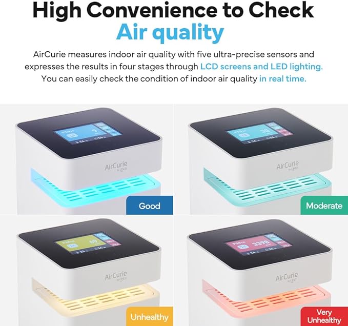 - Quiet Sleep Mode – Enjoy uninterrupted rest while AirCurie continues to monitor and record changes in your air quality.