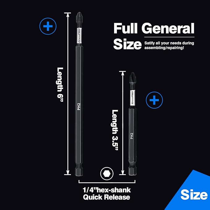 - Phillips SET: This set includes 2 -piece 2 In,2 -piece 3.5 In (PH2),the size is printed in white, which can be quickly identified