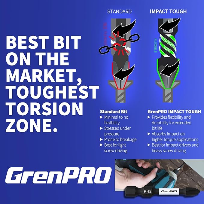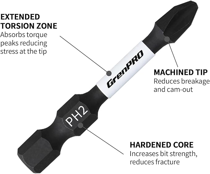 - Torsion zone to absorb torque peaks to avoid breakage. 10 times life expectancy versus standard bits. For impact driver, drill and screwdriver