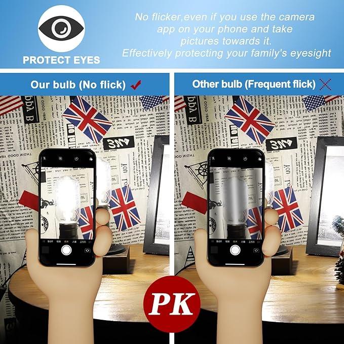 - EYE-CARING&FLICKER FREE :E26 LED bulb is same color as SMD Neutral white 4000K;Flicker free,non buzzing and no glare T14 edison bulb will protecting your family's eyesight;Vanity light bulb offering Neutral and cozy lighting in rustic and modern light fixtures with or without a shade