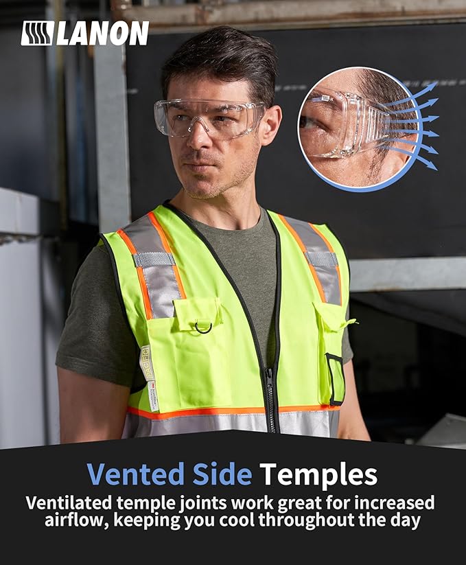 - Anti-fog Coating & Scratch-Resistant: Discover crystal clear vision with these ANSI Z87.1 certified over clear safety glasses, powered by our anti-scratch and anti-fog technology. Plus, these safety glasses that fit over glasses have 100% UV protection to keep harmful rays at bay.
