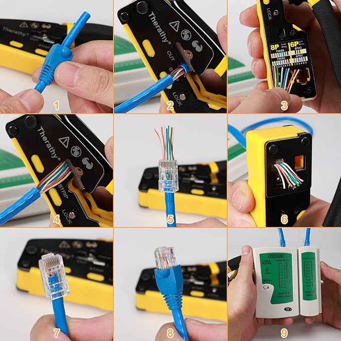 - 【All-In-One RJ45 Crimping Tool】 Wire stripper, crimper, and cutter all-in-one tool for STP/UTP paired-conductor data cables. On-tool wiring guide helps minimize wiring errors