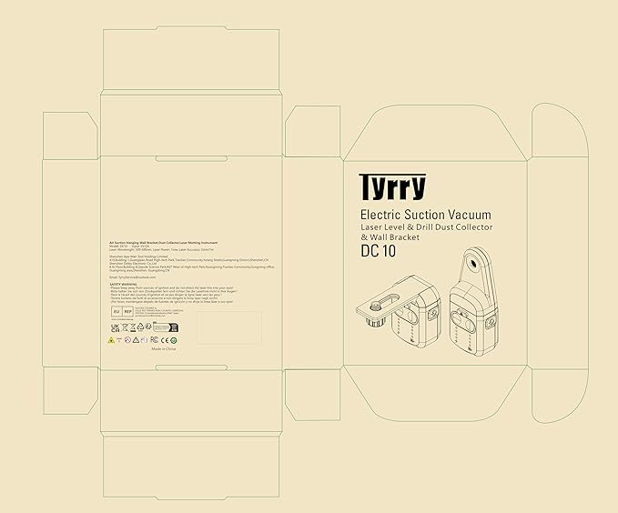 - 【4-in-1 Multifunction Laser Level Tool】Tyrry DC-10 laser level tool is an innovative design that seamlessly combines the functions of a laser level, wall bracket, drill dust collector, and electronic vacuum suction cup. Easily locate your ideal horizontal line with the laser level, make clean holes in the wall using your drill, and say goodbye to messy dust clouds. Perfect for alignment and leveling in decoration, pcture hanging, home improvement, construction, and related tasks.