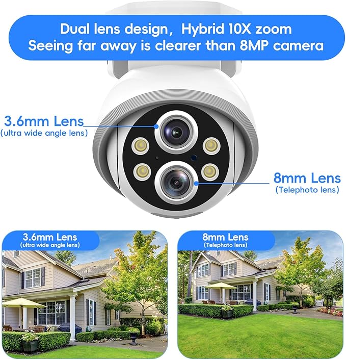 MMQ Security Camera Wireless, 2MP Dual Lens Camera for Home Security, Outdoor Camera PTZ with 10X Hybrid Zoom, Auto Tracking Human Detection, 2-Way Talk, Color Night Vision, Compatible with Alexa