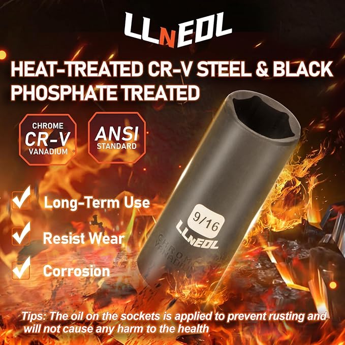 - ๐ใDURABLE MATERIALใ LLNEDL 1/4 socket set is made of heat-treated Cr-V steel and has a black phosphate treated on the surface to resist wear and corrosion for long-time use. Note: The oil on the sockets is applied to prevent rusting and will not cause any harm to the health.