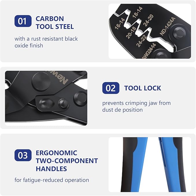 Newdeli Molex Crimper 24-14 AWG Non-Insulated Open Barrel Crimping Tool for JST Style Molex DELPHI AMP TYCO PC Harley Deutsch Terminals Receptacles Wire Terminal Crimper