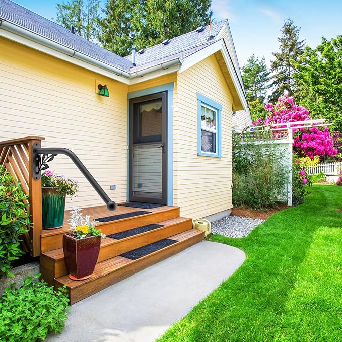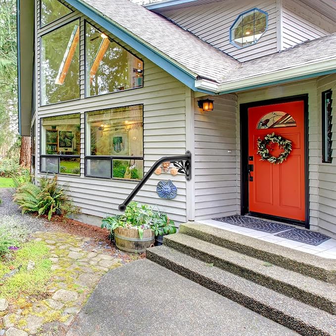 - Sturdy metal handrail for indoor outdoor steps, handrail with matte black paint finished, you can tell by feeling it that it's a forever handrail made to last, load up to 400 lbs