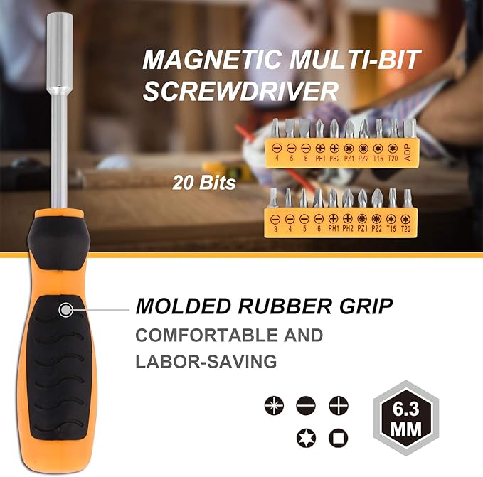 - MULTI-PURPOSE TOOL KIT: This multi-purpose tool set contains a carefully selected assortment of the most reached-for hand tools and sockets used for automotive, mechanical, and household repairs. Ideal for the home, garage, workshop, and DIY enthusiasts. It's also a great vehicle tool kit, truck tool kit, electrical tools kit.