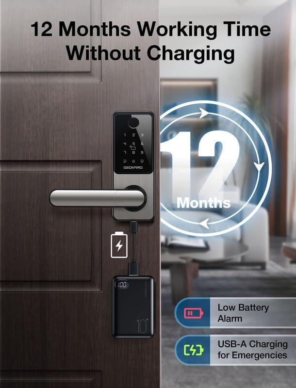 - 【Smart Lock with Long Battery】This electronic door lock boasts an 18-month battery life, providing uninterrupted functionality and convenience. Our lock features a convenient USB-A emergency charging port, allowing you to recharge the battery quickly.