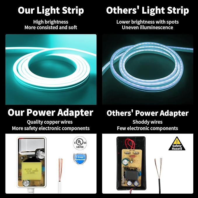 - 【Soft Light】Different than other normal ones on the market, this bendable led light strip has thick and flexible silicon jacket surrounded. And the jacket also do as a light diffuser which make the light more consisted and soft!