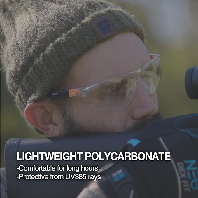 DEX FIT Safety Glasses SG210, Z87 Eye Protection, 3X Anti-Fog & Scratch Resistant, Adjustable, UV Protection (N Orange)