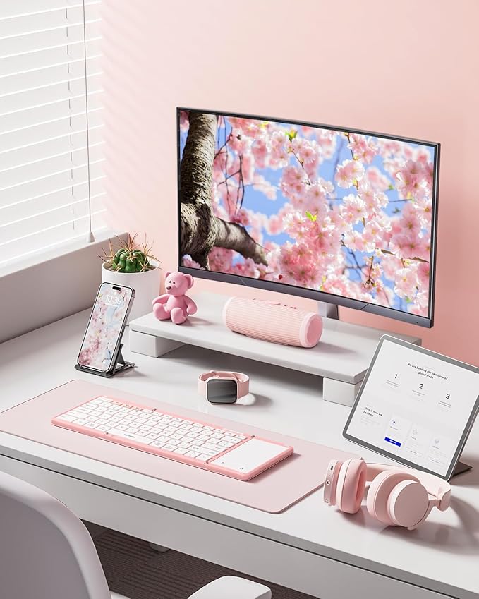 - 【Delicate Portable Keyboard】Pink PU leather appearance, made of ABS+PU material, lightweight but stable, no need to worry about daily wear or scratches. Elegant layout design, excellent tactile feel and simple appearance make it a perfect match for your tablet, phone and laptop. The Great gift for travel and business trips!