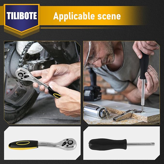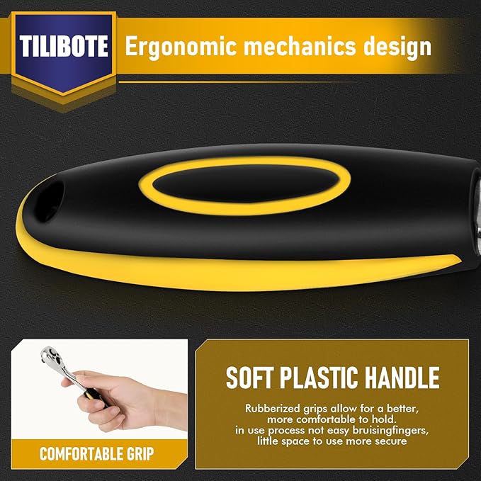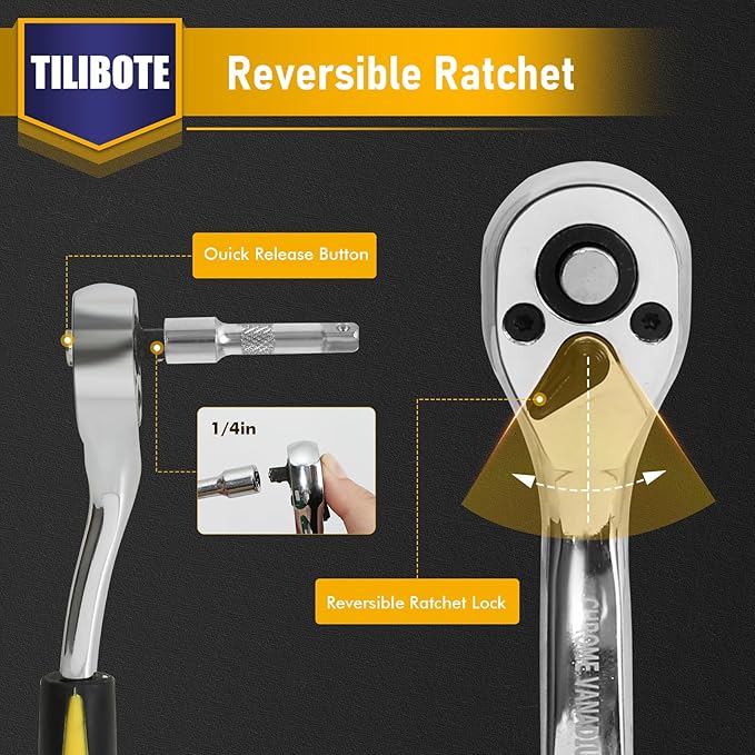 - Easily Used And Storage- 1/4 Socket Set Comes With Quick Release Switch And Reversible Mechanism For Easy Operation.The Rubber Handle For Better And More Comfortable Grip.