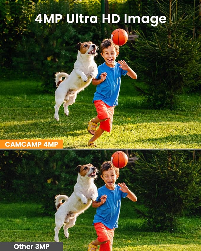 - 360° Coverage, Day and Night Clarity: Capture every event that occurs around your home in ultra-clear 4MP resolution. Equipped with 4 spotlights and IR lights, Camcamp security camera system provides full-color night vision even at night and monitor distance up to 65 feet. This PTZ solar camera provides 130°ultra-wide viewing angle and 8x zoom, No blind spots. No Motion Tracking! No Auto Rotate! All-around to monitor your property, give you peace of mind