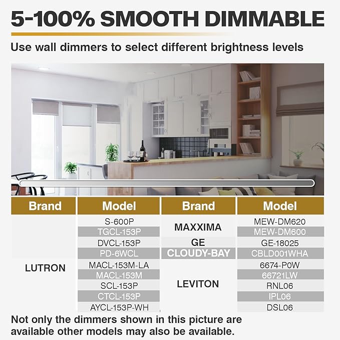 - 💡【Color Changing & Smooth Dimmability】 The Black retrofit LED recessed lighting 6 inch is dimmable, 2700K(Soft White), 3000K(Warm White), 4000K(Neutral White), 5000K(Cool White), 6000K(Daylight). 5-100% seamless and smooth dimming capabilities, compatible with most dimmers in the market.