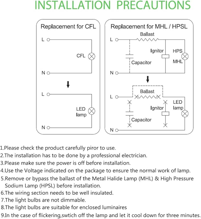 - ✅ WARNING: Fixtures will need to be rewired to bypass the ballast. Suitable for open or semi-open