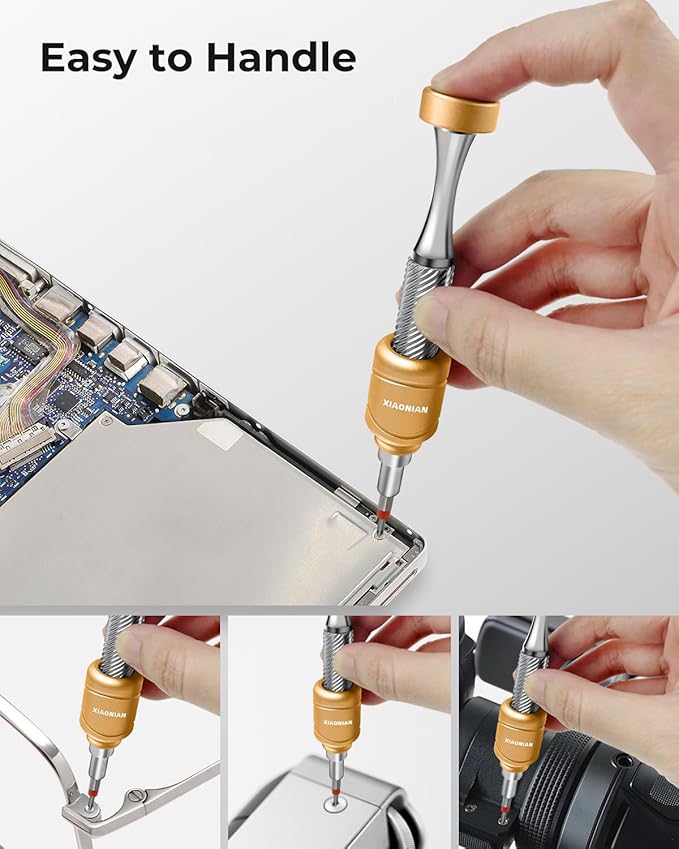 - 【Professional Magnetic Driver Handle】 XIAONIAN 37 in 1 magnetic screwdriver set features a low center of gravity design with a drum-shaped ergonomic grip for precise control and comfort during use, enhanced with a smooth rotating cap for efficient screw driving.