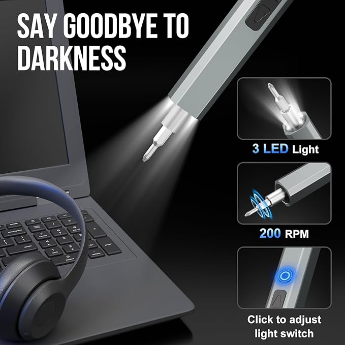 - 【Time-Saving Electric Screwdriver】The mini electric screwdriver has a rotational speed of up to 200 RPM, ensuring quick and efficient screwdriving. The torque can be adjusted from 0.15 to 0.35 N.m, providing precise control for different jobs. This electric screw driver also features a square shape with circular arc for a comfortable non-slip grip. And intuitive forward and reverse buttons make it easy to use for professionals and beginners alike
