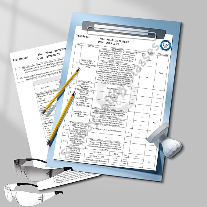 - ANSI Z87.1 Safety Glasses:Safety glasses meet the ANSI Z87.1 safety standard to withstand basic impacts and effectively insulate against the dangers posed by dust or chemical splashes. We offer two colors for you to choose from: grey and clear. The tinted safety glasses have UV protection, which can effectively block UV rays and protect your eyes