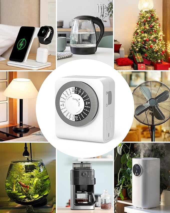 - 【VERSATILE APPLICATIONS】 Suitable for a wide range of uses, from holiday decorations and Christmas lights to lamps, indoor gardening grow lights, aquarium and fish tank lights, and reptile lights. This timer offers flexibility for various needs and operates quietly, ensuring a peaceful environment.