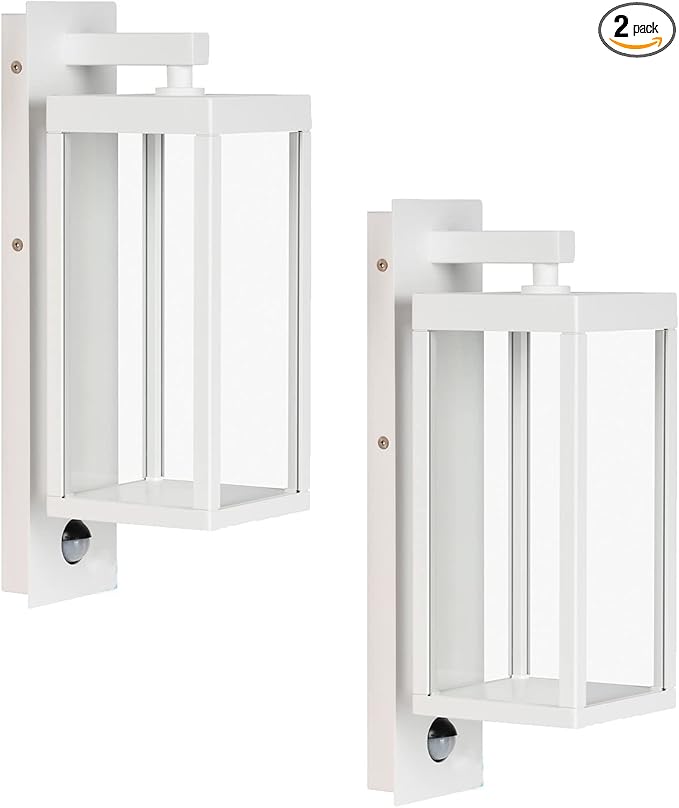 Lustrlach 2 Pack White Outdoor Wall Lights with Motion Sensor,15in LED Exterior Modern Porch Light Fixture IP54 Waterproof Wall Mount Lamp Wired for Outside Garden Front Door Patio
