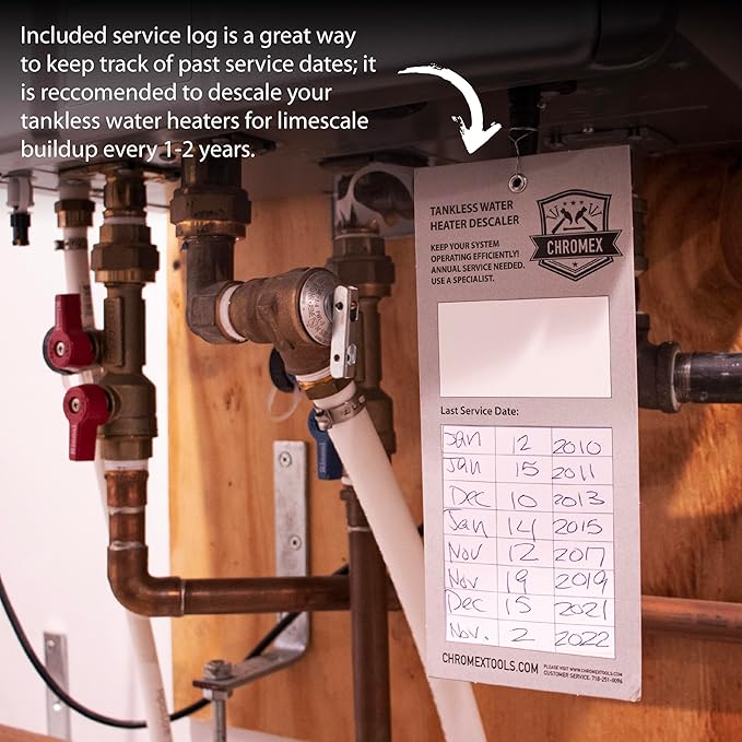 Chromex Tankless Water Heater Flush Kit with Concentrated Vinegar, Dilutes to 4 Gallons and 1/6HP Extra Strength Pump