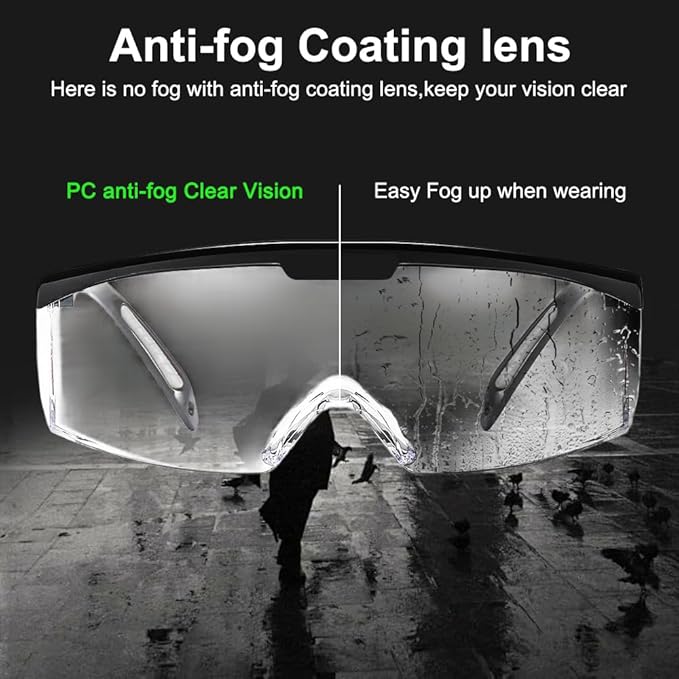 - ππππππ-π ππ πππππππ ππππ: Here is a special double anti-fog coating on the safety glasses eye protection makes it particularly impact resistant ,scratch-resistant and acid alkali resistant, on the outside and fog-free on the inside. a special lens coating also protects your eyes from harmful UV rays.