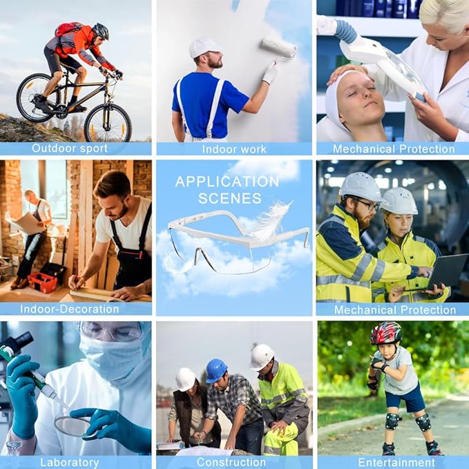 - ππππππ πππππππππππ : Our safety glasses goggles can be applied in various situations, such as outdoor, laboratory work, woodworking, mowing, gardening, drilling, sanding, welding, outdoor sports, etc.