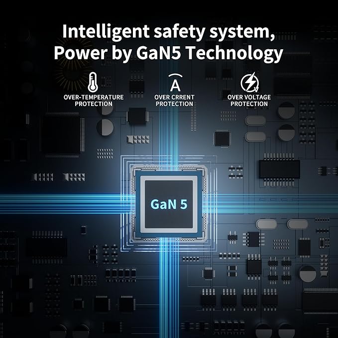 - 【High-Efficiency and Safe Laptop Charger】: Upgraded GaN 5 technology. built-in multi-protection system and premium microchips and automatic switch-off after full charge,Protection against short circuit, overheating, overvoltage and overcharging,Reduce design size, reduce operating heat,Power up your 16-inch MacBook Pro to 50% in just 25 minutes using the first USB-C port, which delivers 120W to significantly boost your productivity. also can charge 6 laptop in the same time!