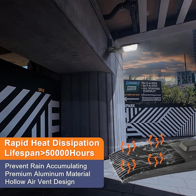 - 🚀【Commercial Grade Material】--The UL/DLC Listed led street area lights are made of Die-casting aluminum body with polyester powder-coated finish. The scientific design helps the exterior light post top to dissipate better, achieve the best use of the led lighting. IP65 waterproof and Dimmable: 1-10V, with a 20KV surge protection device built-in, wet environment, sandstorms, snowstorms, and harsh weather conditions.