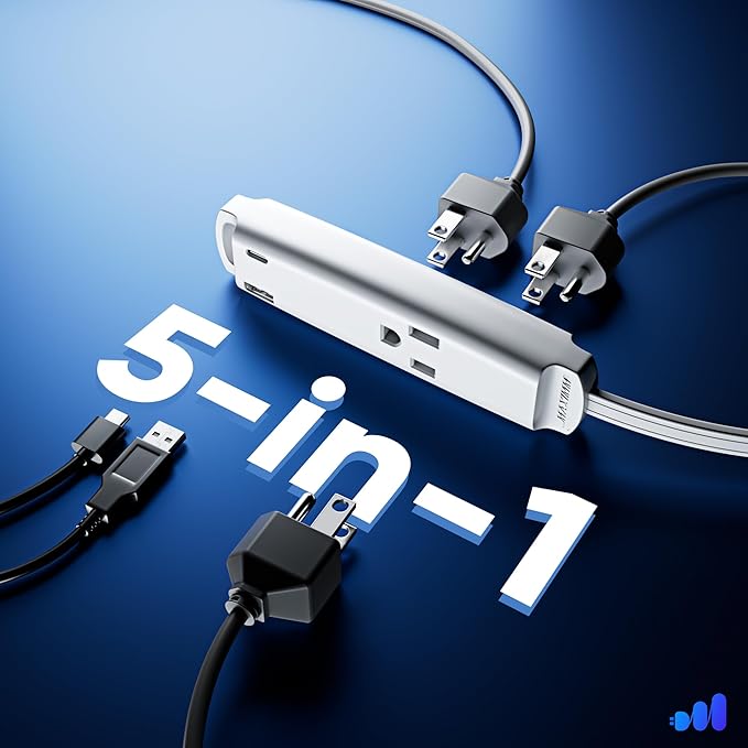 - MULTIPLE PLUG OUTLET WITH USB PORTS. Maximm's ultra thin flat extension cord features three 3-prong female connectors extending your AC power outlet for your electrical appliances, one USB-C port and one USB-A outlet plug to charge and connect your USB devices such as laptop, smartphones, and tablets - an ideal outlet with usb ports that works both for household and office use.