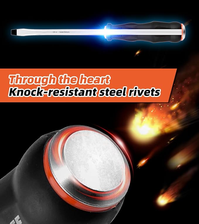 - ๐ ๏ธHammerable Screwdriver: Extra tough Pound-thru blade is designed to withstand hammering, preventing splintering of screwdriver handle or blade.