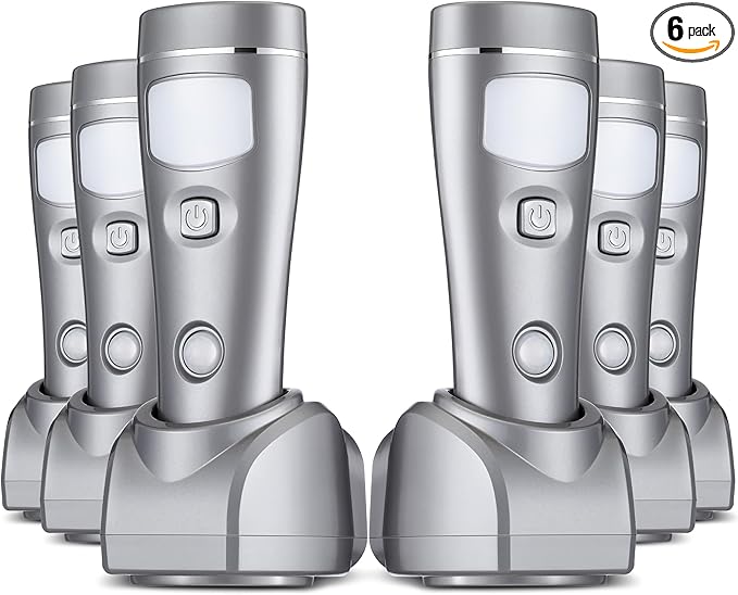 Enhon 4 in 1 LED Rechargeable Plug in Flashlights, 6 Pack LED Emergency Lights for Home Power Failure Emergency, Plug in Power Outage Light, Power Failure Light with Motion Detection (Silver)