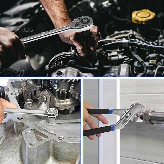 - [High Quality Tools] - All sockets and wrenches are made of high quality steel with chrome vanadium polish, that protects tools against corrosion, forged body for more torque, strength and durability.