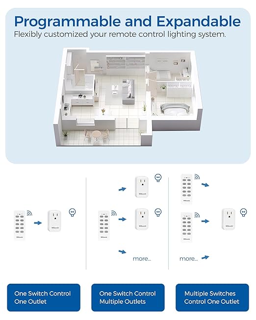 - Programmable and Expandable: WILAWELS remote control socket kit is expandable with extra remotes, sockets or lamp bases of the same brand. The pairing process simplifies the control of multiple sockets with a single remote or a device with multiple remotes, giving you the freedom to customize your lighting combination