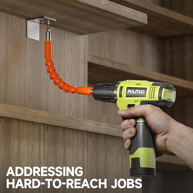 - What's Included: 12 V lithium-ion battery cordless drill and charger, 5 pcs drill bits: 4 mm、5 mm、6 mm、7 mm、8 mm,10 pcs driver bits,a Screw anchor set,an extension bar for sticking on the fastener, and a magnetic flexible shaft for hard-to-reach places