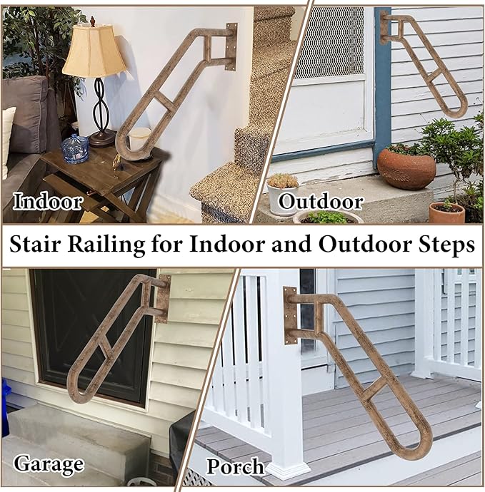 - 【Full Welded Hand Rails】 These handrails for outdoor steps are fully welded, durable, strong and stable construction that can withstand up to 500lbs of pulling force. No assembly required, stronger and will last for years. The antique brass finish not only provides functionality, but also adds an elegant touch to your outdoor space.