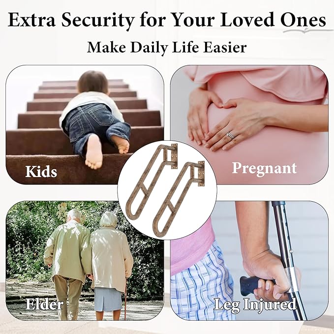 - 【Safe and Reliable Stair Railing】 Our newly designed wall mount handrail features a bent U-shaped design with 2 anti-skid crossbars for better balance and a comfortable, secure grip that prevents hands from slipping due to insufficient force.