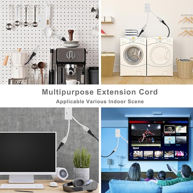 - 【3 Prong 15 Amps Extension Cord】 White flexible extension cord outlet saver, SJTW 14AWG/3C heavy duty cord, AC 125V/15A 1875W power rated, 6 inch indoor/outdoor short extensioon cord.