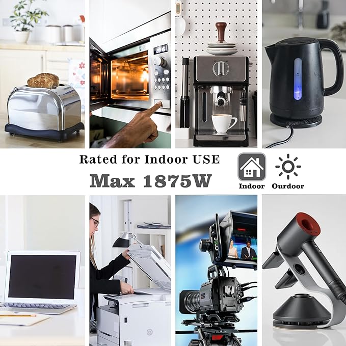 - 【UNIVERSAL COMPATIBILITY】 This 14AWG heavy duty power extension cord with NEMA 5-15R and NEMA 5-15P connectors is ideal for computers, monitors, printers, other office appliances, and home usedeal for plugging in large appliances such as refrigerators, ovens, toasters, microwaves, freezers, washers, dehumidifiers, dryers, power tools, table saws, space heaters, AC window units, in-wall air conditioners, dishwashers, range hood, garbage disposal, and other major appliances. treadmill, inflatable hot tub.