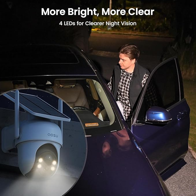 AOSU Security Cameras Outdoor Wireless, 4 Cam-Kit, No Subscription, Solar-Powered, Home Security Cameras System with 360° Pan & Tilt, Auto Tracking, 2K Color Night Vision, Easy Setup, 5G & 2.4G WiFi