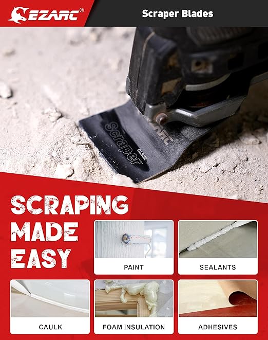 - 【Titanium Oscillating Blades】EZARC oscillating saw blades with Titanium coated teeth are 50% more durable than bi-metal oscillating multitool blades for long-lasting performance. It can efficient cut soft metal, wood with nails, wood, plastic, plasterboard, drywall and so on. (Note: not suitable for bolts, harden screw)