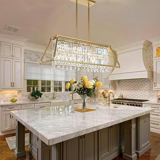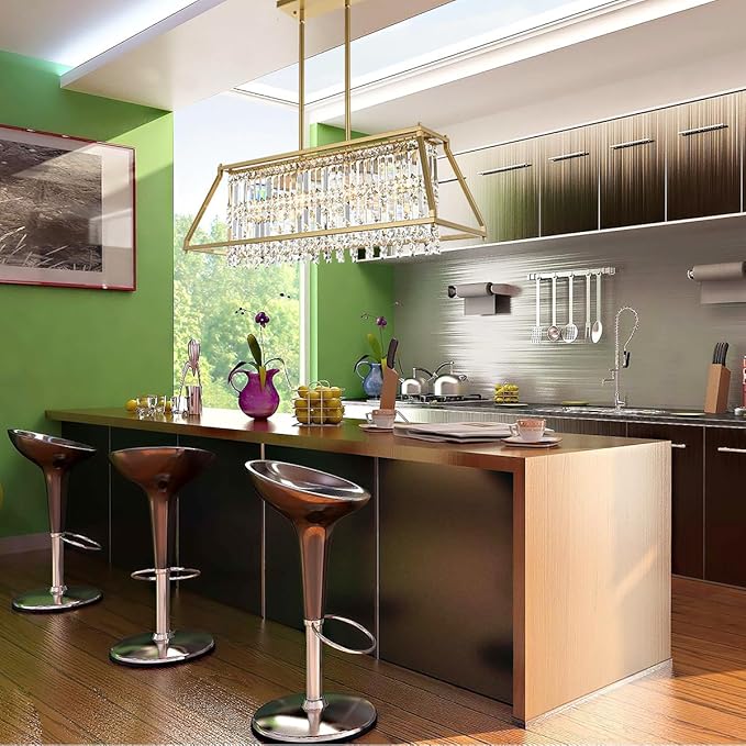 - 【Sturdy Materials】We have selected high-value materials and designed the chandelier for easy installation. This lamp comes with high-quality sparkling crystals and exquisite metal material, ensuring it will be sparkling and durable during use and it's high-quality and elegant design will upgrade your home always.