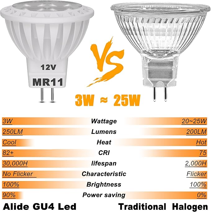 - Reduce costs and trouble of changing lights: MR11 GU4 bulbs have reflector good heat sink design and high quality driver inside to ensure bulbs long lifespan over 30,000 hrs, can last very long time, save effort and maintenance costs on changing bulbs frequently, you no need worry quality