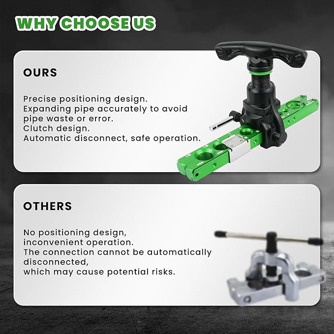 - 【Accurate Flaring】Kamitaly copper flaring tool comes with 2 types of flaring clamps for pipe O.D. (inch: 1/4“, 5/16”, 3/8“, 1/2”, 5/8”, 3/4 ”, metric: 6mm, 9mm, 10mm, 12mm, 16mm, 19mm). No matter the size of the pipe, we can meet your needs