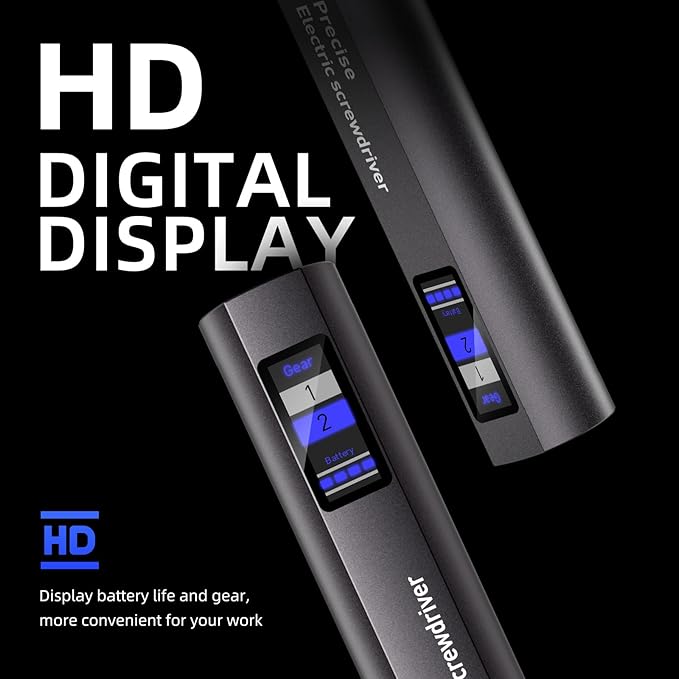 - Digital display & LED Lighting: An upgraded version with a digital display that gives you a clear view of gear and battery life. The electric screwdriver is equipped with LED lighting, which helps you easily find the screw holes in low-light environments, improving work efficiency.