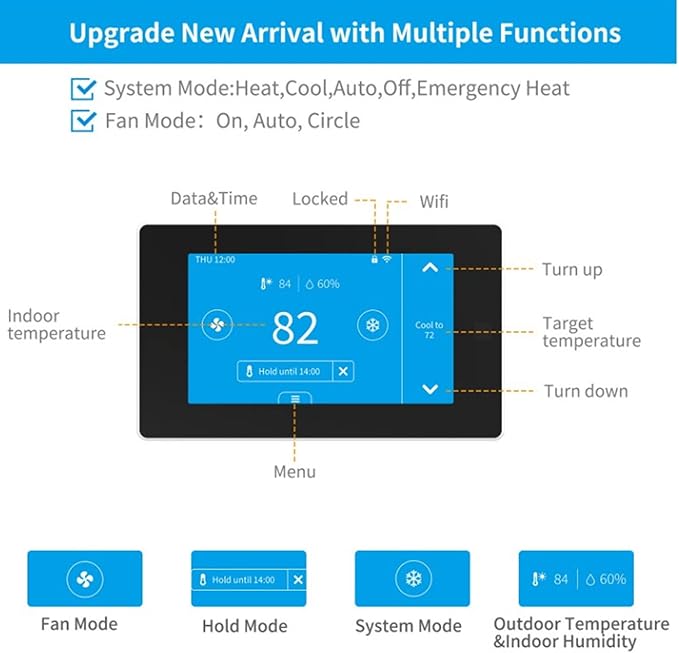 - Safe and Reliable: The thermostat is made of excellent materials and has multiple protection measures such as hardware anti theft, timer shutdown and overload prevention, for greater peace of mind when using it.