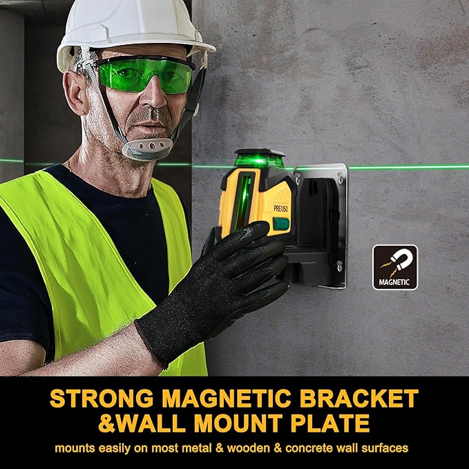 - Dual Power Modes & Universal Usage: PREXISO laser level has a Type-C power interface. When the battery is taken out, the laser tool can be used by direct plugging or power bank Rotatable 360° magnetic mounting base to assemble with the 1/4"-20 treaded mount at the bottom of the tool. Suitable for wide uses, such as paving tiles, installing carpentry for doors, windows, or furniture, hanging wallpaper, etc. PREXISO line laser dustproof, wear-resistant, cold, and high temperature. Covered by TPE soft rubber for shock-resistant and comfortable grip