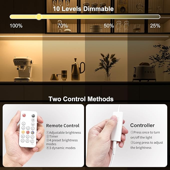 - Super Bright&Brightness adjustable:Super bright LED cabinet lights delivers total 1500 lumen,Came with RF dimmer to adjust the brightness.CRI>90, 960 LEDs.Provides high quality kitchen lighting